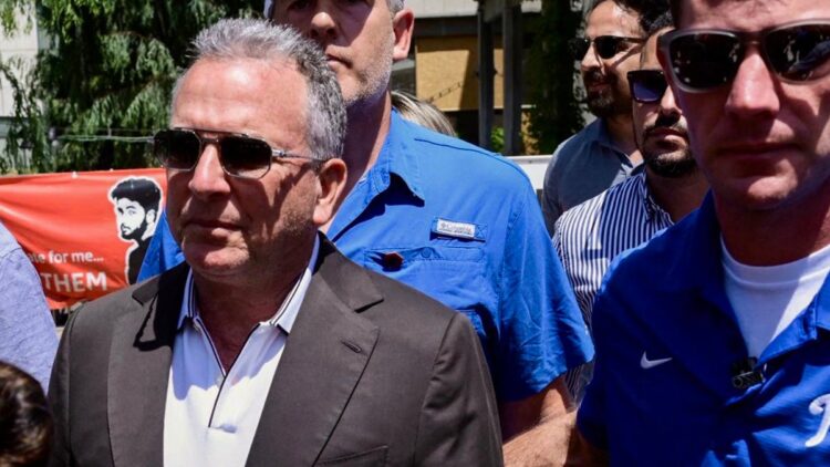 Rodeado de guardaespaldas, Witkoff llegó a pie a la llamada Plaza de los Rehenes en Tel Aviv, donde se encontraban familiares de las 49 personas aún retenidas en Gaza —vivas o presuntamente muertas— secuestradas el 7 de octubre de 2023 durante el ataque de Hamás, según imágenes difundidas en redes sociales y compartidas por medios israelíes.